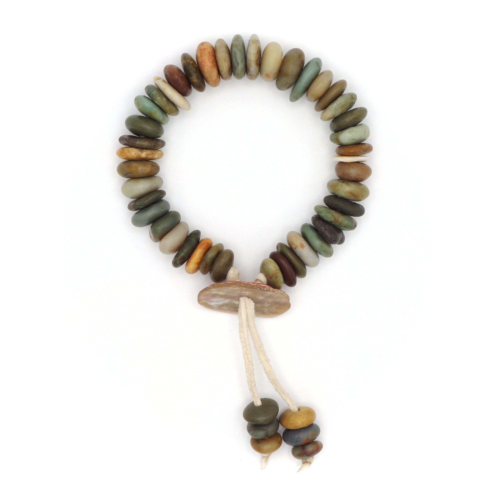 Beautiful hard stones with Big Sur abalone slider. Adjustable from 5" to 8". All natural, all hand collected and hand made, every part.