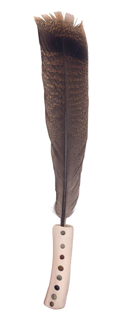 Deer Bone and Wild Turkey Feather Smudge Fan with Inlaid Sea Jewels