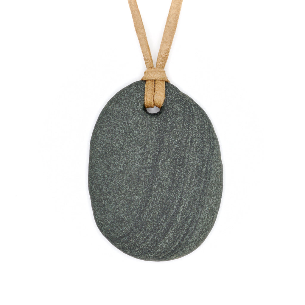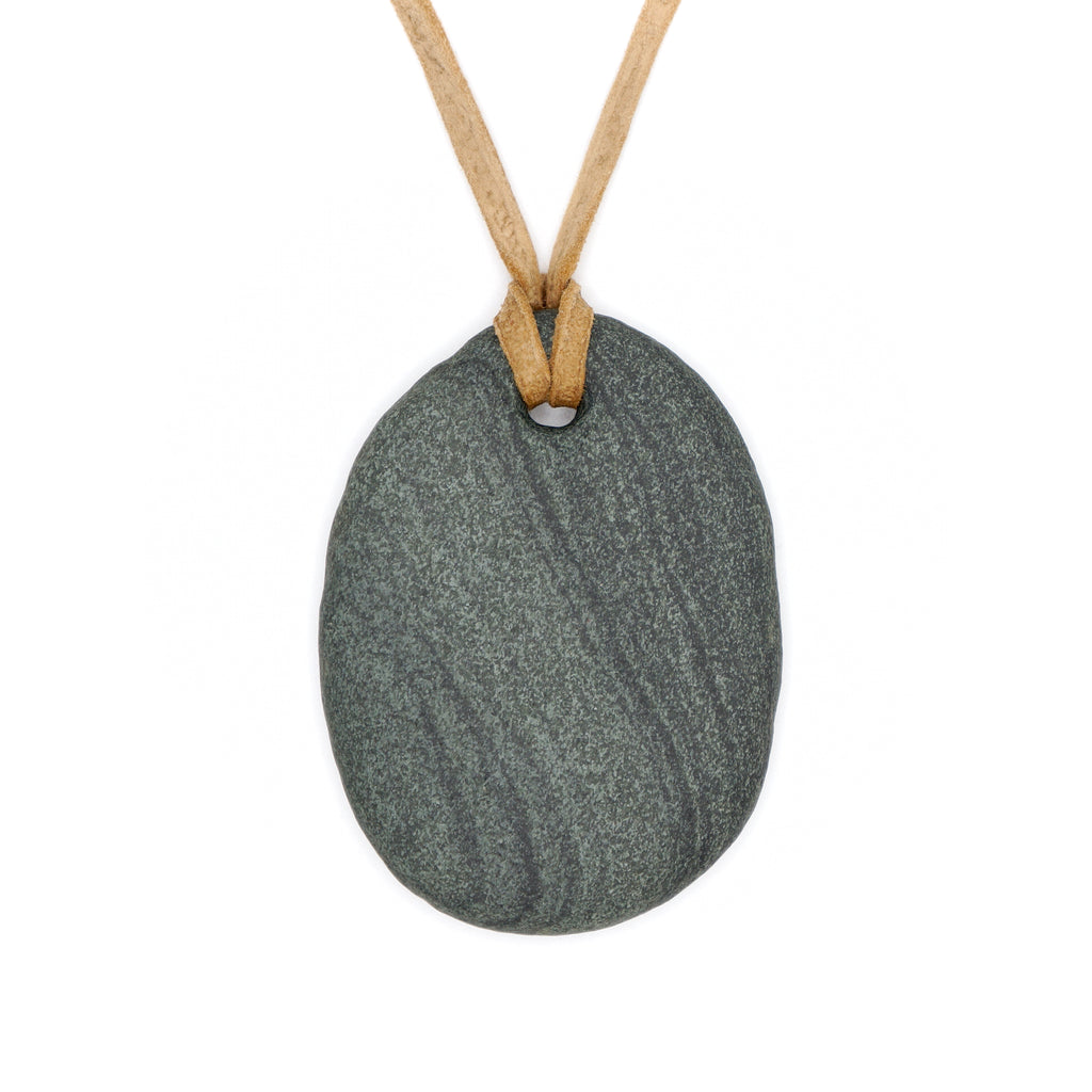 Amazing patterns and texture, superb weight, powerful stone pendant strung on hand made/hand cut buckskin. One of a kind.